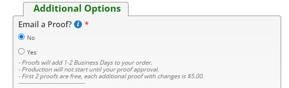 - Artwork proofs sent for your approval do delay the start of production by 1-2 Days.